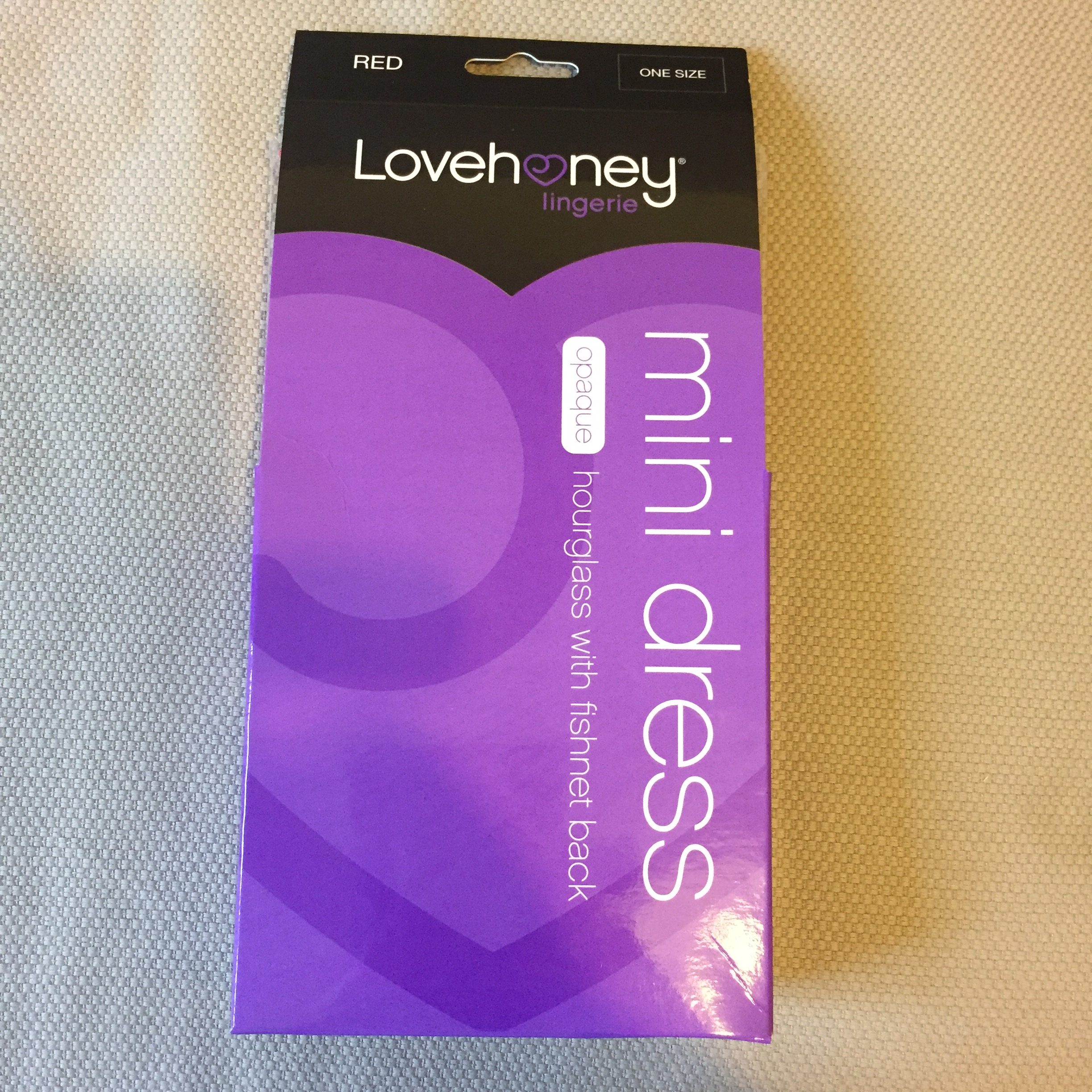 The mini dress comes packaged in a Lovehoney branded purple and black sleeve. The front of the sleeve states the colour and size of the mini dress.